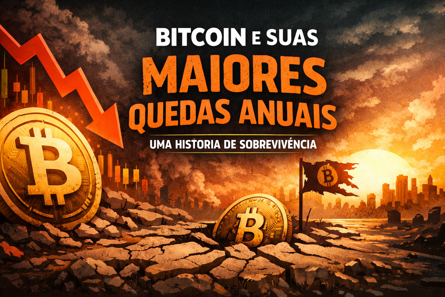 Quase todos os anos tiveram quedas superiores a 50%. Alguns passaram de 80%. Vários ultrapassaram 90%. Ainda assim, o Bitcoin não desapareceu.