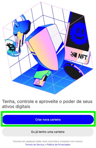 Abra a carteira e clique em CRIAR NOVA CARTEIRA