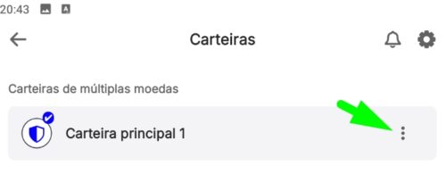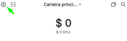 Na página inicial da carteira, clique no ícone com símbolo de engrenagem do topo superior esquerdo, para abrir as configurações: