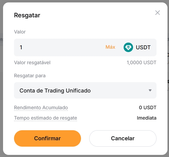 Escolha a moeda que usamos: USDT e clique em RESGATAR – não há custo algum! 😀